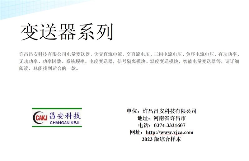 許昌昌安科技有限公司是專業(yè)生產智能電力測控設備及自動化裝置的高科技公司。產品包括電力系統(tǒng)微機中央信號報警裝置,電纜絕緣在線監(jiān)測裝置,相地保護裝置,電流、電壓監(jiān)視繼電器,失壓斷流計時儀,多功能電力儀表、電量變送器、溫濕度控制器、智能操控裝置等產品,形成了多系列為電力系統(tǒng)成套企業(yè)配套的產品及服務。 公司注重新技術新產品的開發(fā),同時全面貫徹ISO9001質量保證體系。 公司前身為許昌市儀器儀表研究所。多年以來,公司致力于測控儀器儀表的開發(fā)生產,積累了豐富的為電力用戶服務的經驗及產品,形成了一個充滿活力,積極進取的團隊。